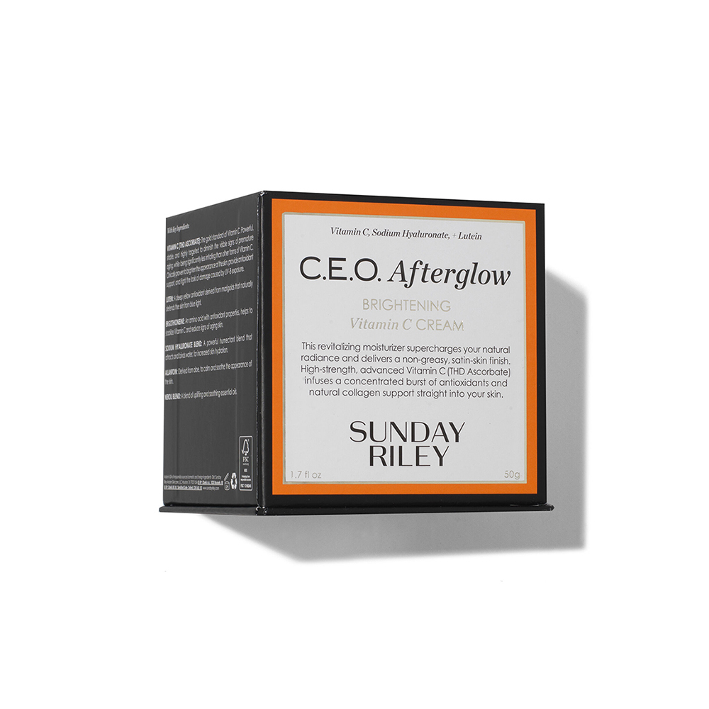 Boost radiance with the Sunday Riley C.E.O. Afterglow Brightening Vitamin C Cream, a revitalising moisturiser packed with nutrients to help hydrate and brighten the complexion.